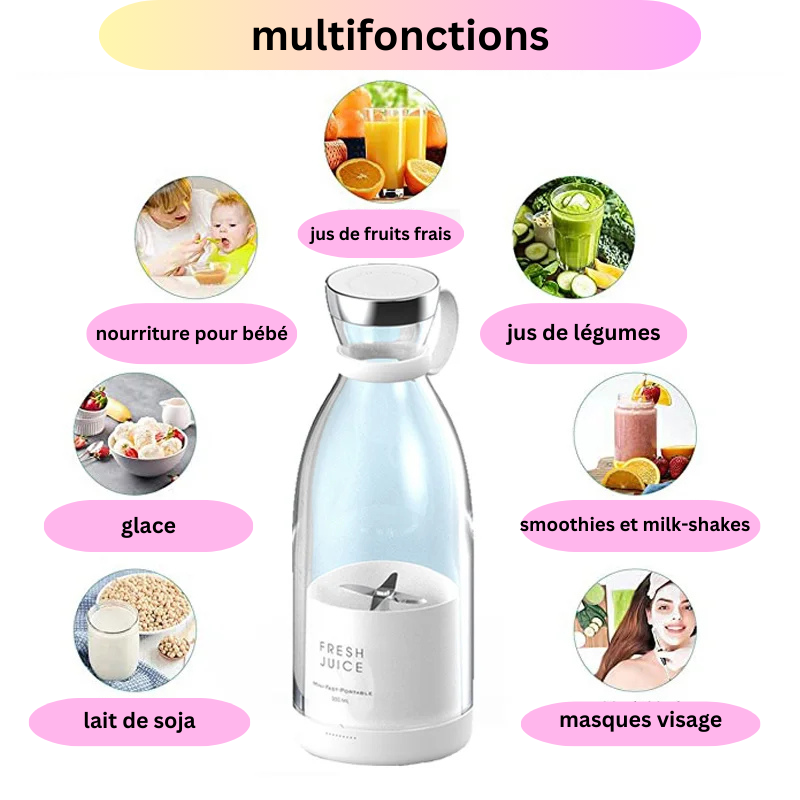 Mixeur à jus électrique portable, mixeur de fruits USB mini, extracteur de jus, machine multifonctionnelle à jus pour aliments et milkshake